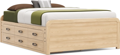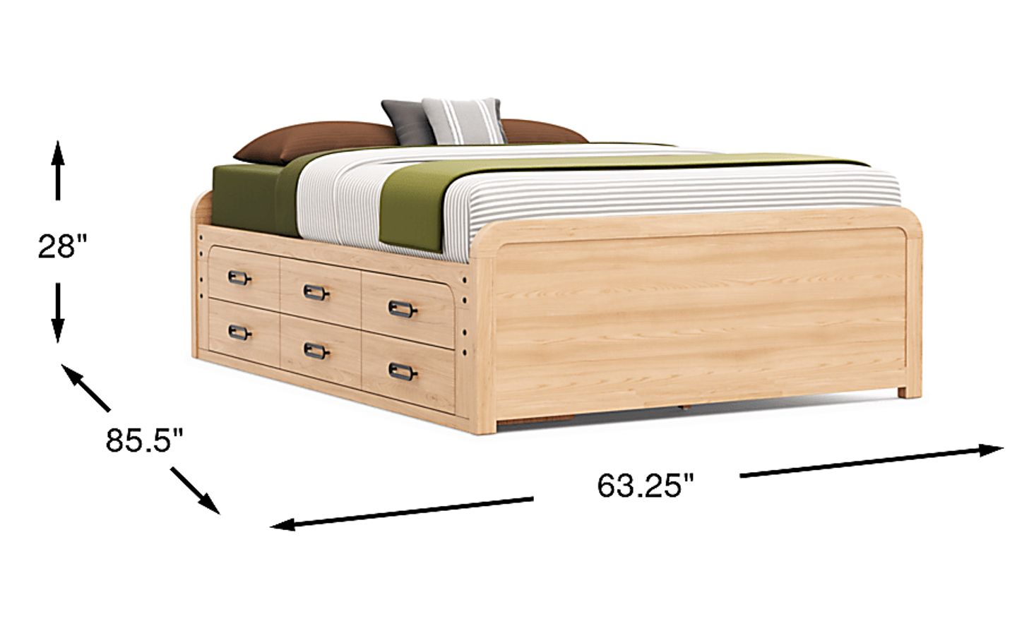 Kids Hidden Hills Light Oak Queen Low Profile Bed With Storage Side Rail