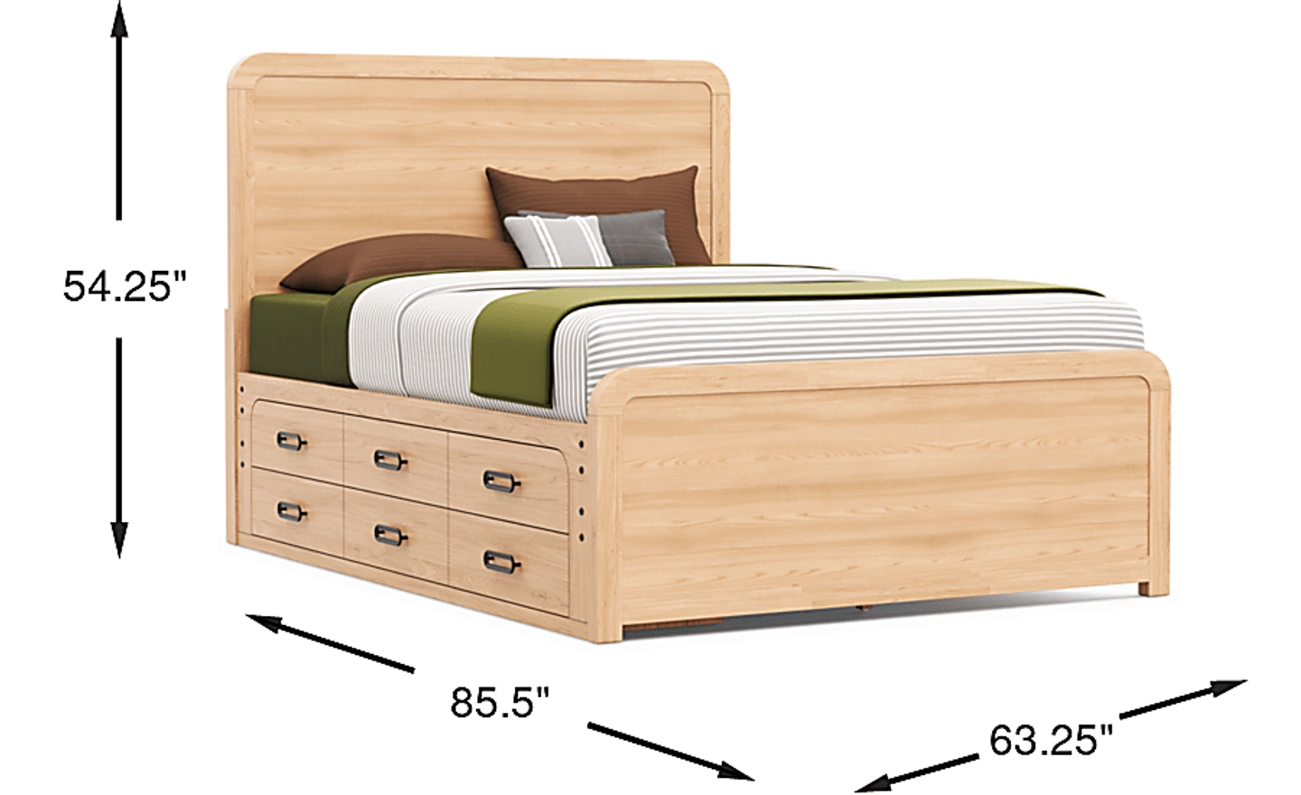 A queen bed is a smart, long-term investment that transitions seamlessly from childhood through the teenage years. Measuring 63.25"W x 85.5"D, it provides ample space for a growing child and offers a more comfortable, adult-sized sleeping surface that won't need to be upgraded later. The contemporary panel design and light oak finish are versatile enough to suit changing decor tastes as your child matures.