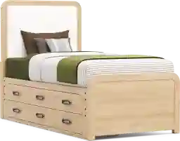 Kids Hidden Hills Light Oak Twin Upholstered Panel Storage Bedroom