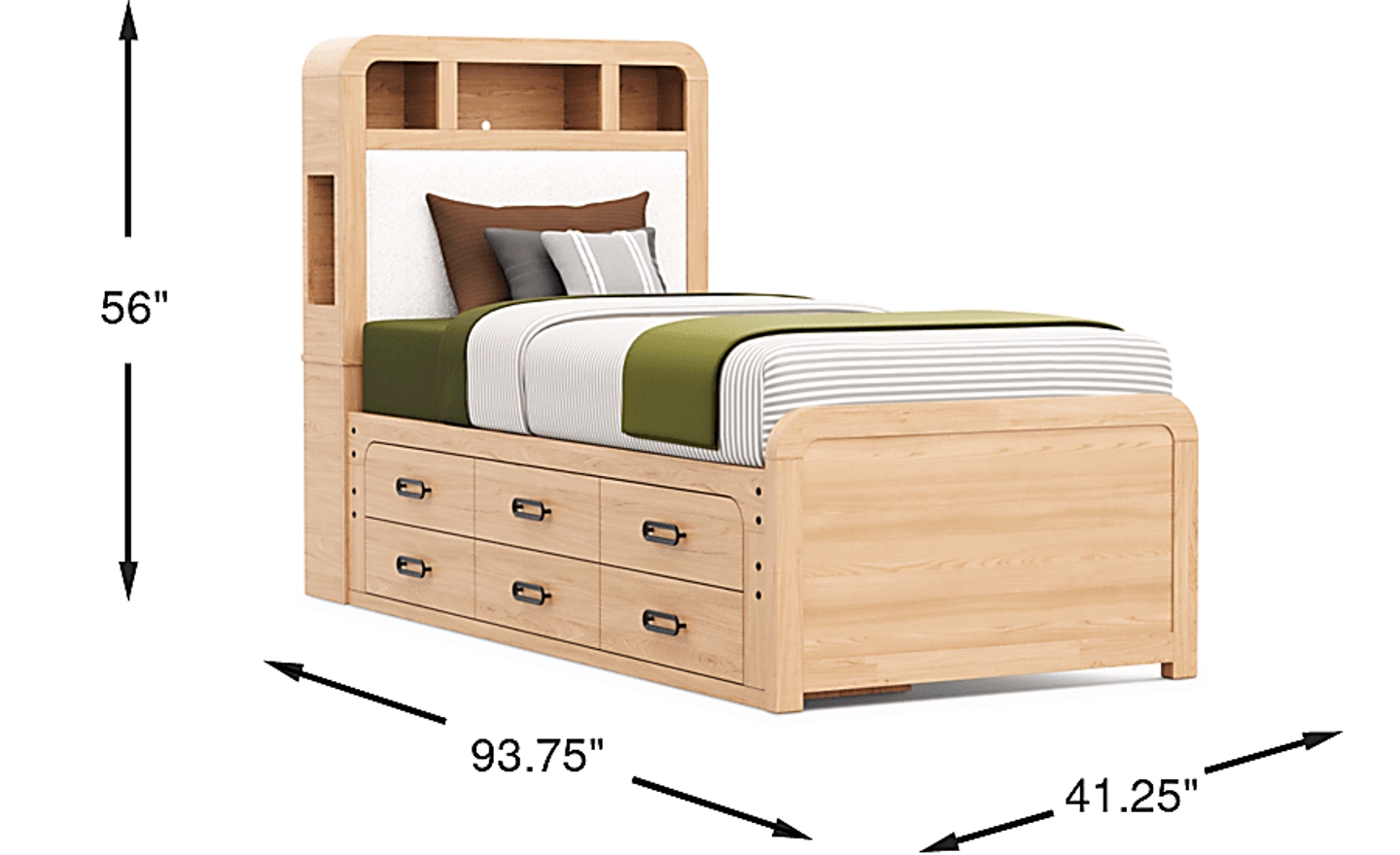 With a width of 41.25 inches, this bed maintains a slim profile that fits easily into narrow rooms typical of urban apartment living. While the total depth of 93.75 inches is slightly longer than a standard bed to accommodate the bookcase and extra length, the built-in storage and tech features consolidate several pieces of furniture into one footprint, making it an efficient choice for compact or multi-functional spaces.