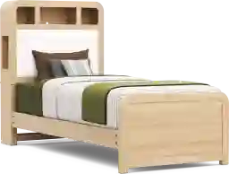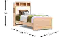 Discover cozy corners, secret spots and everyday surprises in the Hidden Hills bedroom collection by Drew & Jonathan. This bed features real oak wood veneers with a natural grain highlighted by a gentle, light finish that adds calm warmth to any child's space. The bed's bookcase headboard combines a trio of storage cubbies with a snowy boucle-upholstered panel, creating a cozy spot for lounging while keeping books and treasures neatly within reach. A white LED light strip and integrated USB-A and USB-C charging ports add tech-friendly convenience, while built-in cord management helps keep things tidy. Mattress and foundation (if required) sold separately.
