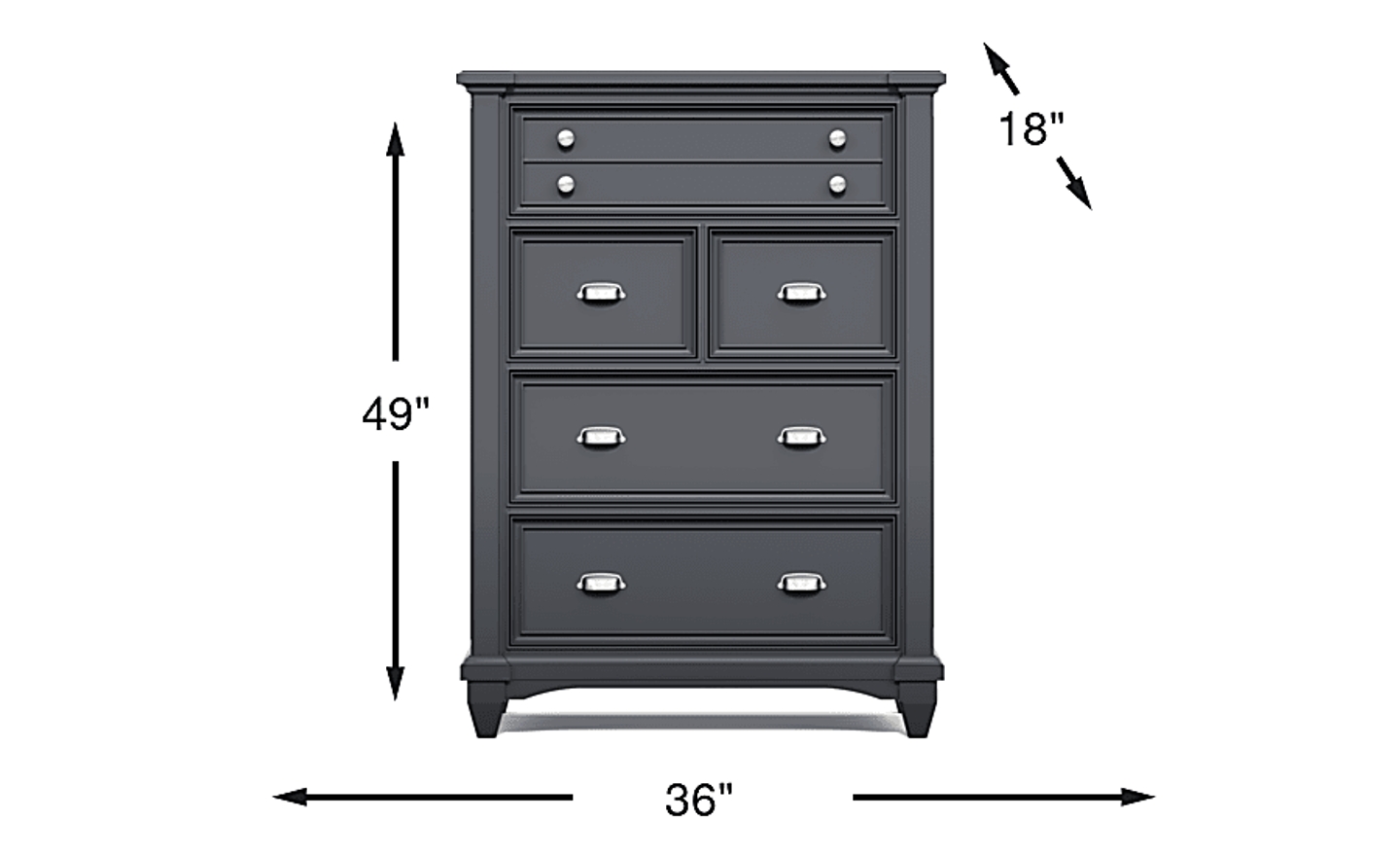 Great for expanding the storage in your kid's room or for fitting in to smaller spaces, the Hilton Head chest can help keep things tidy. Finished with a beautiful graphite paint, this piece is versatile and ready to hold sweaters, blankets or other bulky items thanks to the deep drawers. Metal hardware pulls in a stylish nickel finish is the perfect finishing touch for this piece.