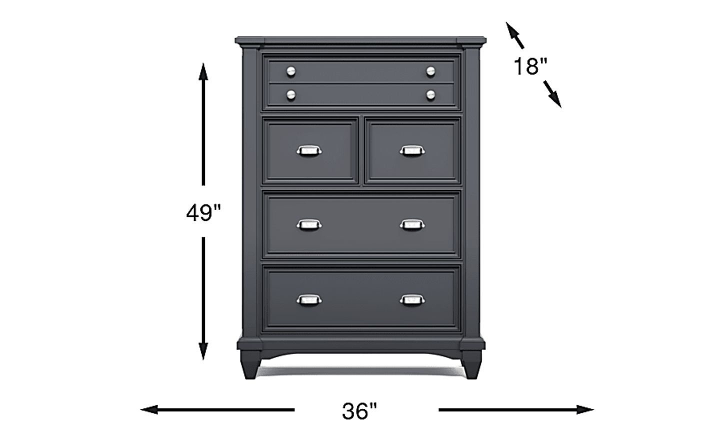 The chest features a timeless traditional style with a graphite paint finish and nickel-finished hardware. Because there is no visible wood grain, the piece offers a clean, transitional look that easily adapts as a child's decor preferences change from early childhood through their teenage years.