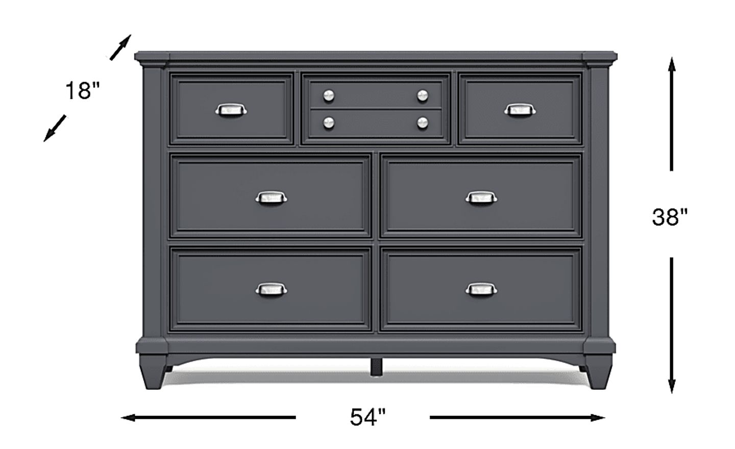 With dimensions of 54"w x 18"d x 38"h, this dresser is thoughtfully scaled to provide substantial storage without over-dominating the floor plan. Its 18-inch depth makes it an excellent choice for narrower rooms or urban apartments where space is at a premium. The seven-drawer configuration is particularly beneficial for shared rooms, allowing siblings to easily divide and organize their own designated storage areas.