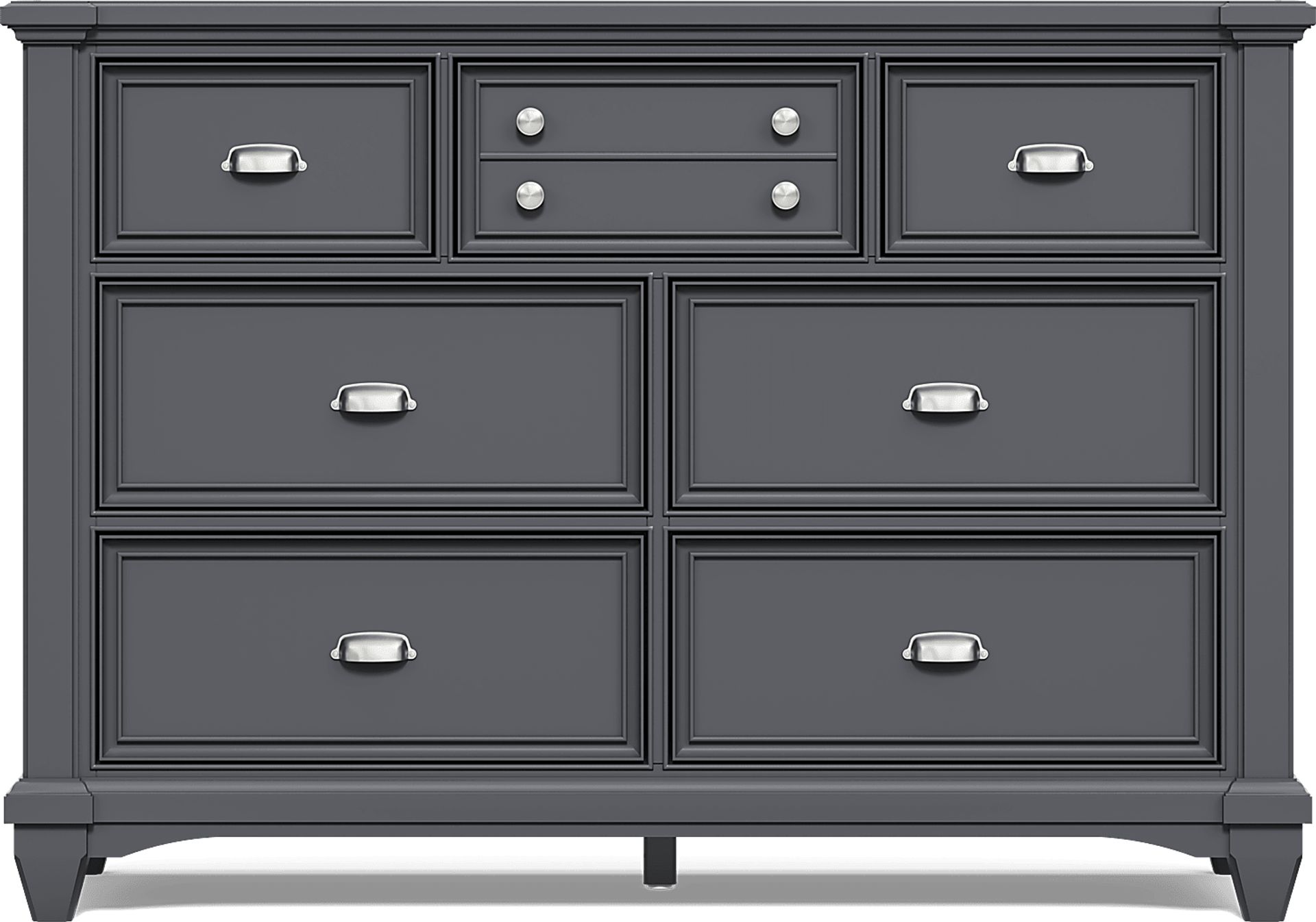 Classic style is easy to add to your child's bedroom with the timeless Hilton Head dresser. Featuring a simple, transitional design that's highlighted by seven drawers with metal hardware pulls in a clean, nickel finish. Crafted in a beautiful graphite finish, this piece is attractive addition to any child's room.