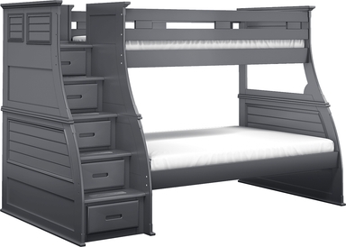 Complete your child's room with the cool and convenient Hilton Head bunk. With a classic design that features a unique shutter look and a beautiful graphite finish, this bunk is sure to be a hit. The bunk has a twin over full configuration provides ample space for two kids and an optional storage trundle can add an extra bed for sleepovers or additional storage. This bunk swaps the ladder for stylish steps that have built-in storage drawers. This product requires a bunkie board (sold separately) Mattress and foundation (if required) sold separately.