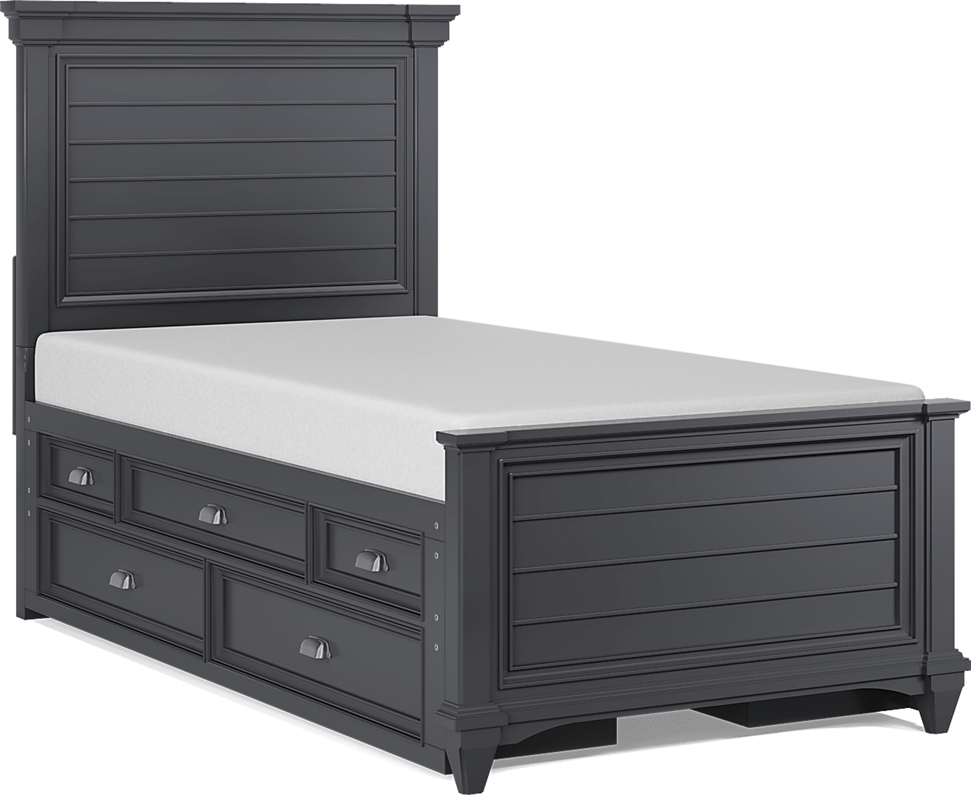 Kids Hilton Head Graphite Twin Panel Bed With Storage Side Rails
