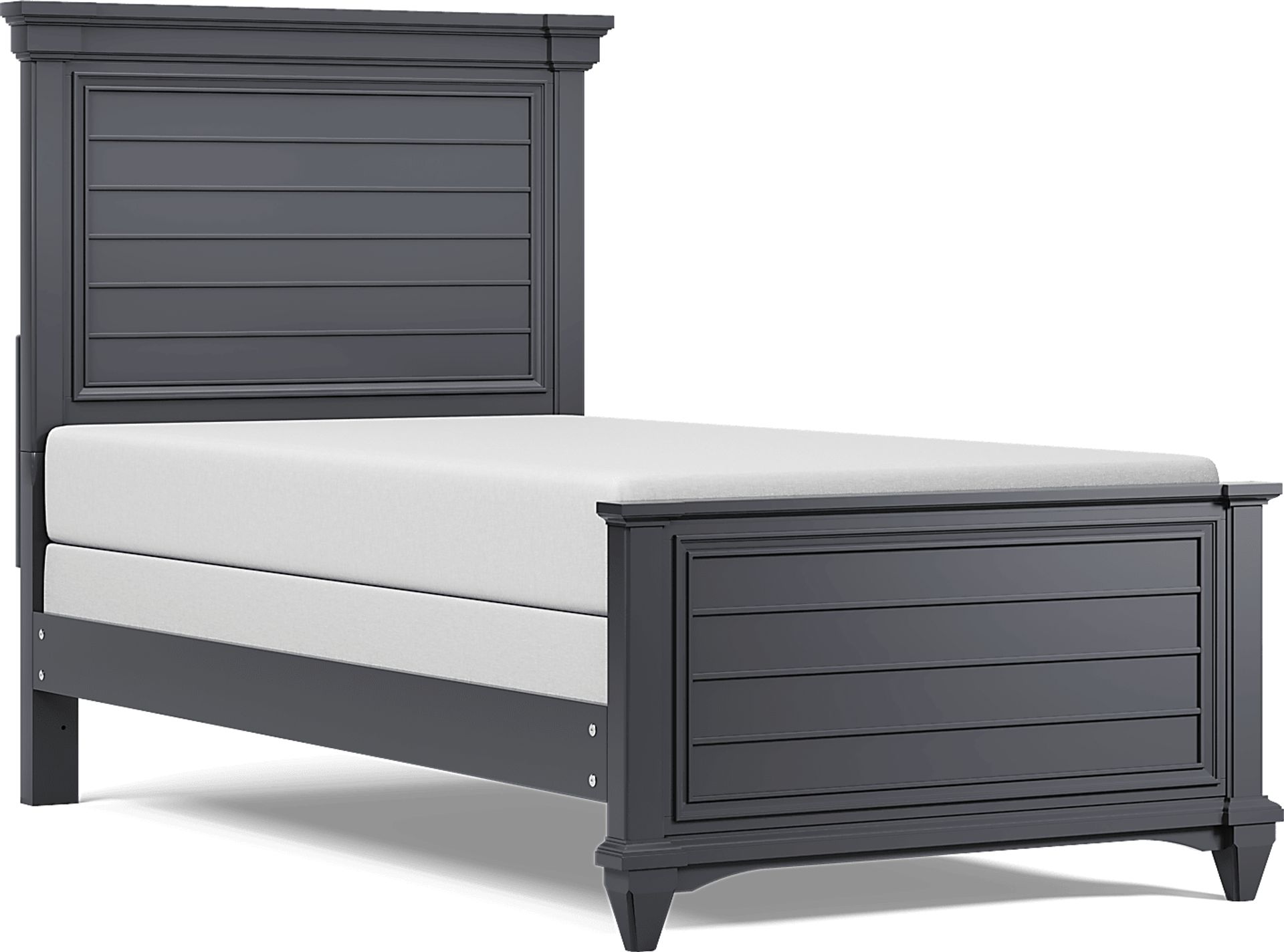 Great for kids and teens, the classically styled Hilton Head panel bed will be an instant hit. This transitional bed features a unique shutter look on the headboard and footboard helping it stand out. The versatile graphite finish helps this bed fit in with many decor styles. Mattress and foundation (if required) sold separately.