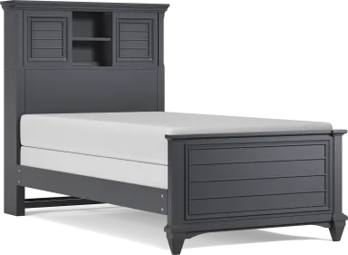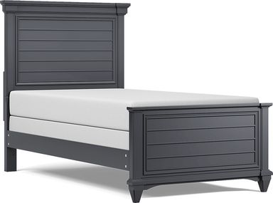 Tuck your kid into the classically styled Hilton Head panel bedroom will be an instant hit. This transitional bedroom features a unique shutter look on the headboard and footboard of the bed helping it stand out. The versatile graphite finish helps this room fit in with many decor styles. The included dresser and mirror add storage for clothing and a spot to check out their look before leaving the house. Trundle sold separately. Mattress and foundation (if required) sold separately.