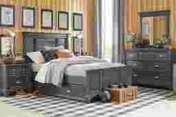 Tuck your kid into the classically styled Hilton Head panel bedroom will be an instant hit. This transitional bedroom features a unique shutter look on the headboard and footboard of the bed helping it stand out. The versatile graphite finish helps this room fit in with many decor styles. The included dresser and mirror add storage for clothing and a spot to check out their look before leaving the house. Trundle sold separately. Mattress and foundation (if required) sold separately.