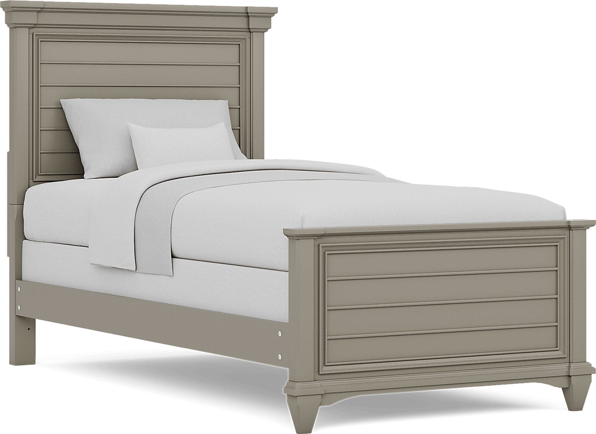 Great for kids and teens, the classically styled Hilton Head panel bed will be an instant hit. This transitional bed features a unique shutter look on the headboard and footboard helping it stand out. The versatile gray finish helps this bed fit in with many decor styles and the wood solid construction makes for a quality piece to center any child's room. Mattress and foundation (if required) sold separately.