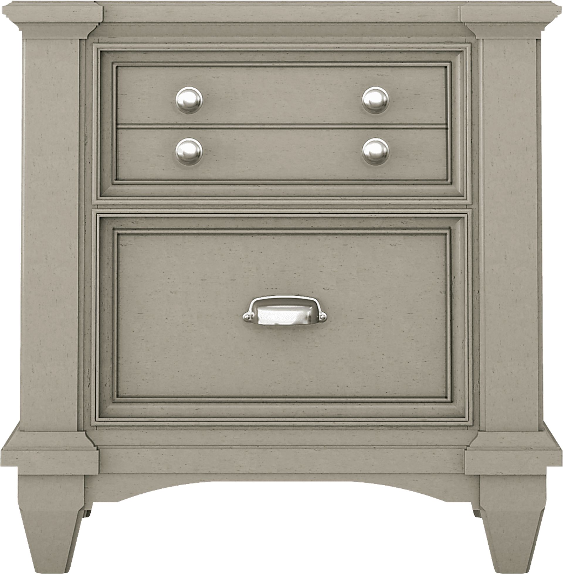 The charming Hilton Head nightstand is the perfect bedside companion for your child. Two drawers offer plenty of bedside storage and maintain a stylish appearance with metal hardware in an attractive nickel finish. The clean gray finish makes this piece a must add to any kids' bedroom. Two built-in USB ports make sure the ability to charge devices is always available.