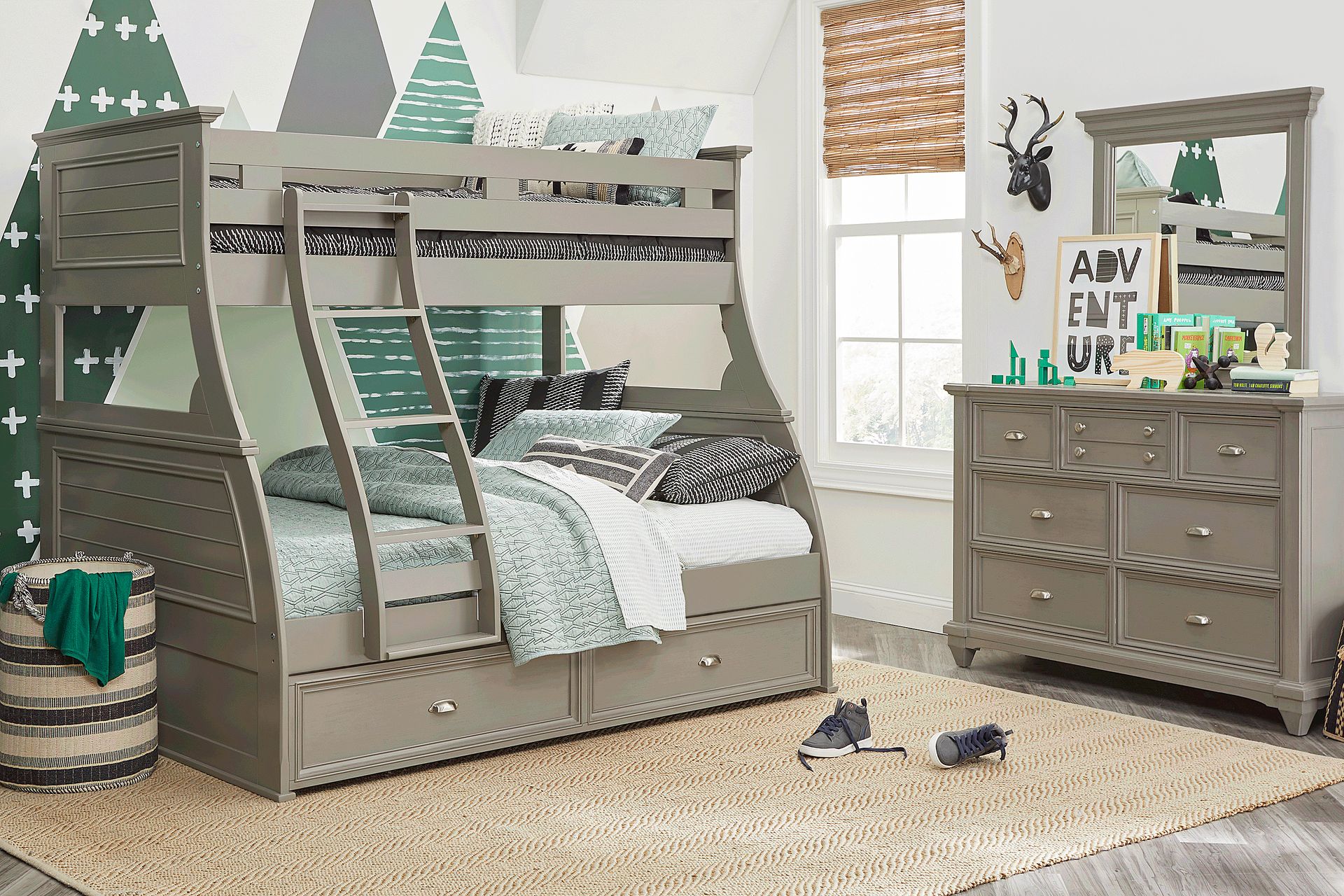 Complete your child's room with the cool and convenient Hilton Head bunk. With a classic design that features a unique shutter look and a beautiful gray finish, this bunk is sure to be a hit. The bunk has a twin over full configuration provides ample space for two kids and an optional storage trundle can add an extra bed for sleepovers or additional storage. Mattresses and foundations sold separately. This product requires a bunkie board (sold separately).