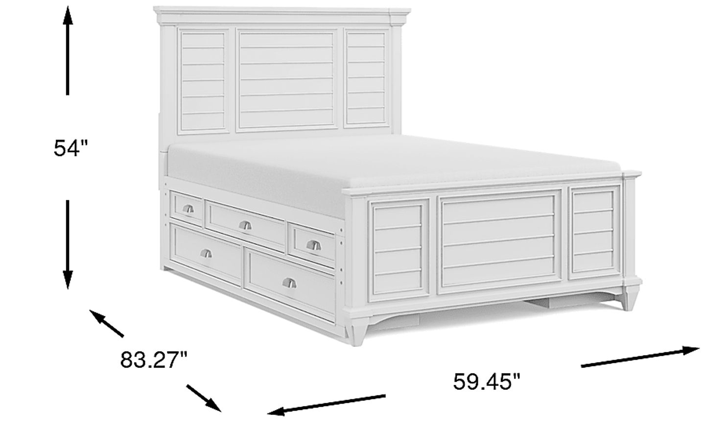 Great for kids and teens, the classically styled Hilton Head panel bed will be an instant hit. This transitional bed features a unique shutter look on the headboard and footboard helping it stand out. The versatile white finish helps this bed fit in with many decor styles, while the combination of wood products and solid wood molding makes for a quality piece to center any child's room. The storage side rails have brushed nickel pulls alongside decorative moldings that create a spectacular under the bed storage solution on both sides of the full bed. Featuring five drawers, both pieces are designed to provide quick and convenient access to bedtime essentials with plenty of room for blankets, pajamas and more. Mattress and foundation (if required) sold separately.