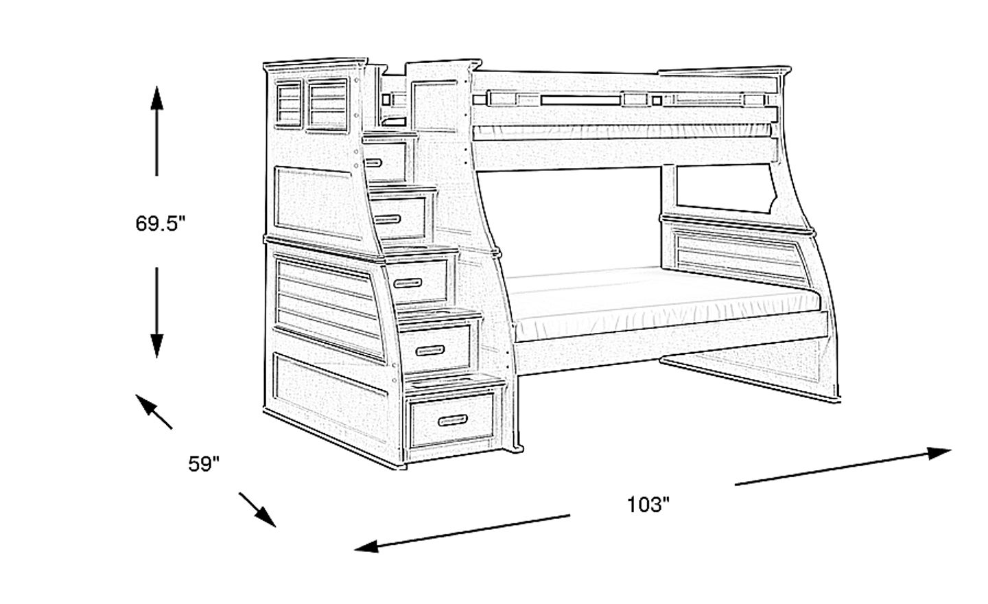 Complete your child's room with the cool and convenient Hilton Head bunk. With a classic design that features a unique shutter look and a beautiful white finish, this bunk is sure to be a hit. The bunk has a twin over full configuration provides ample space for two kids and an optional storage trundle can add an extra bed for sleepovers or additional storage. This bunk swaps the ladder for stylish steps that have built-in storage drawers. Mattresses and foundations sold separately. This product requires a bunkie board (sold separately).