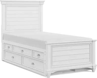 Kids Hilton Head White Twin Panel Bed With Storage Side Rail