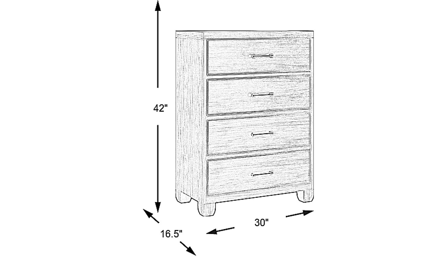 Expand storage or fit into tighter spaces with the Holden's Ridge chest. Four vertically arranged drawers provide ample storage for clothes, bedding and more in a more compact arrangement. This chest is expertly crafted using wood solids in a charcoal finish. Metal hardware pulls in a black finish complete the sleek look of this contemporary piece.