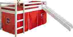 Transition your child from a toddler bed to an exciting twin Hoviespian loft bed. The included slide makes it fun to get up in the morning. The timeless white finish can easily match most any decor. The bed is a great space saver in any child's bedroom, with play area under the bed or open storage area. The red tent fabric can make for a fun indoor tent area or find all the stored items under the bed. Customer assembly required.