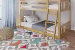 This low bunk bed is specifically designed with younger children's safety in mind. At only 50 inches tall, it significantly reduces the fall height compared to standard bunk beds. Additionally, the bottom bunk sits just two inches off the floor, making it an excellent "Montessori-style" option for toddlers transitioning from a crib, while the top bunk features 14-inch guardrails to provide a secure sleep environment for the upper sleeper.
