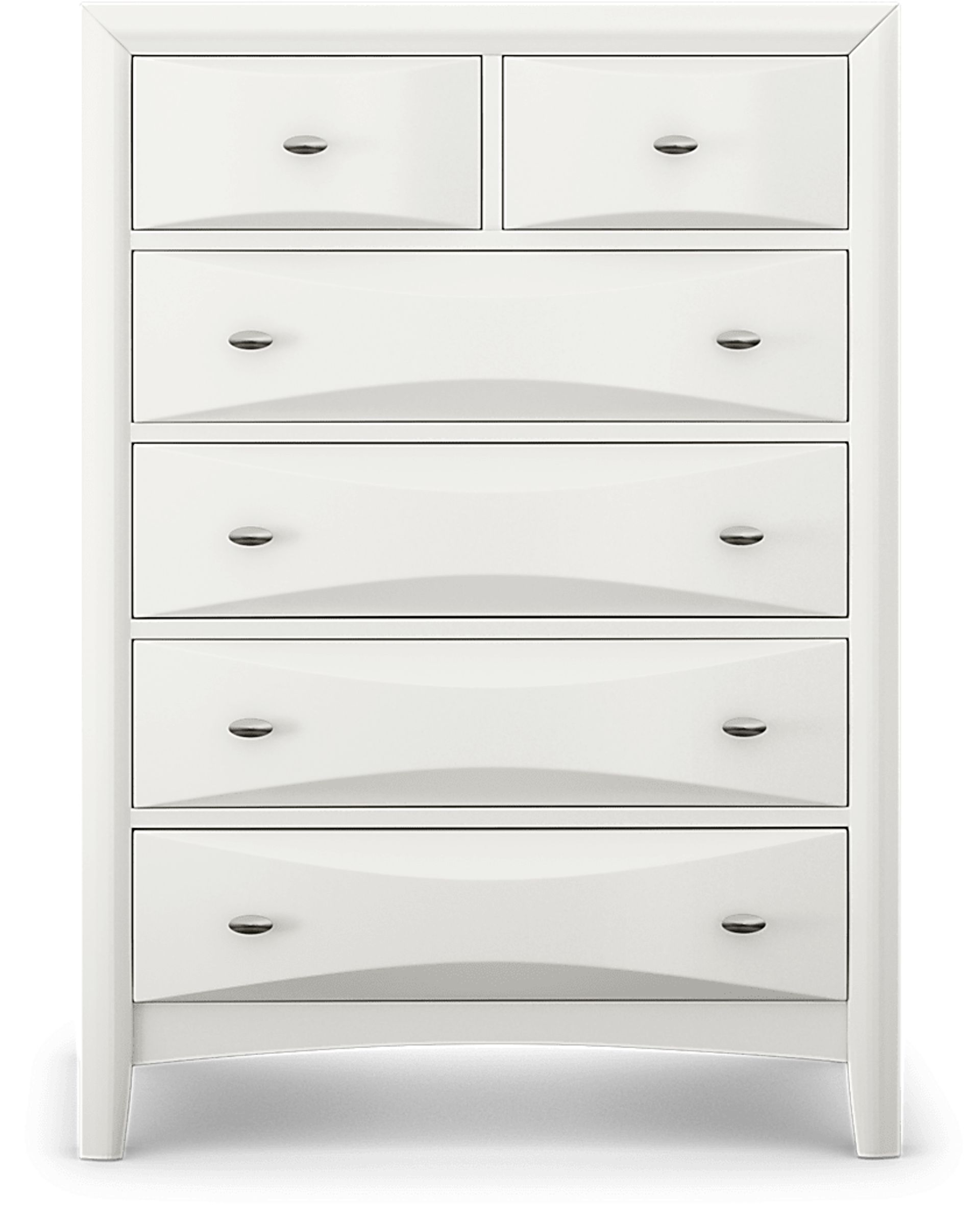 Keeping your kid's room neat is easier with the Ivy League 2.0 chest. Its classic white finish and contemporary styling make it an irresistible addition to the room. Crafted of poplar solids, six beveled drawers provide generous storage for all types of clothes. Brushed nickel pulls and shaped feet add design interest, while French dovetail drawer construction adds an additional quality touch.
