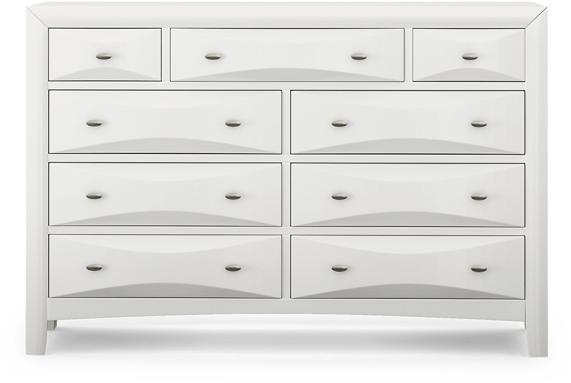 A stylish solution for storing clothing, the Ivy League 2.0 dresser is an eye-catching piece. Crafted of poplar solids, with a classic white finish, the dresser features nine drawers with solid French dovetail construction. Bevel edged drawers, along with brushed nickel pulls and shaped legs, complete the look.