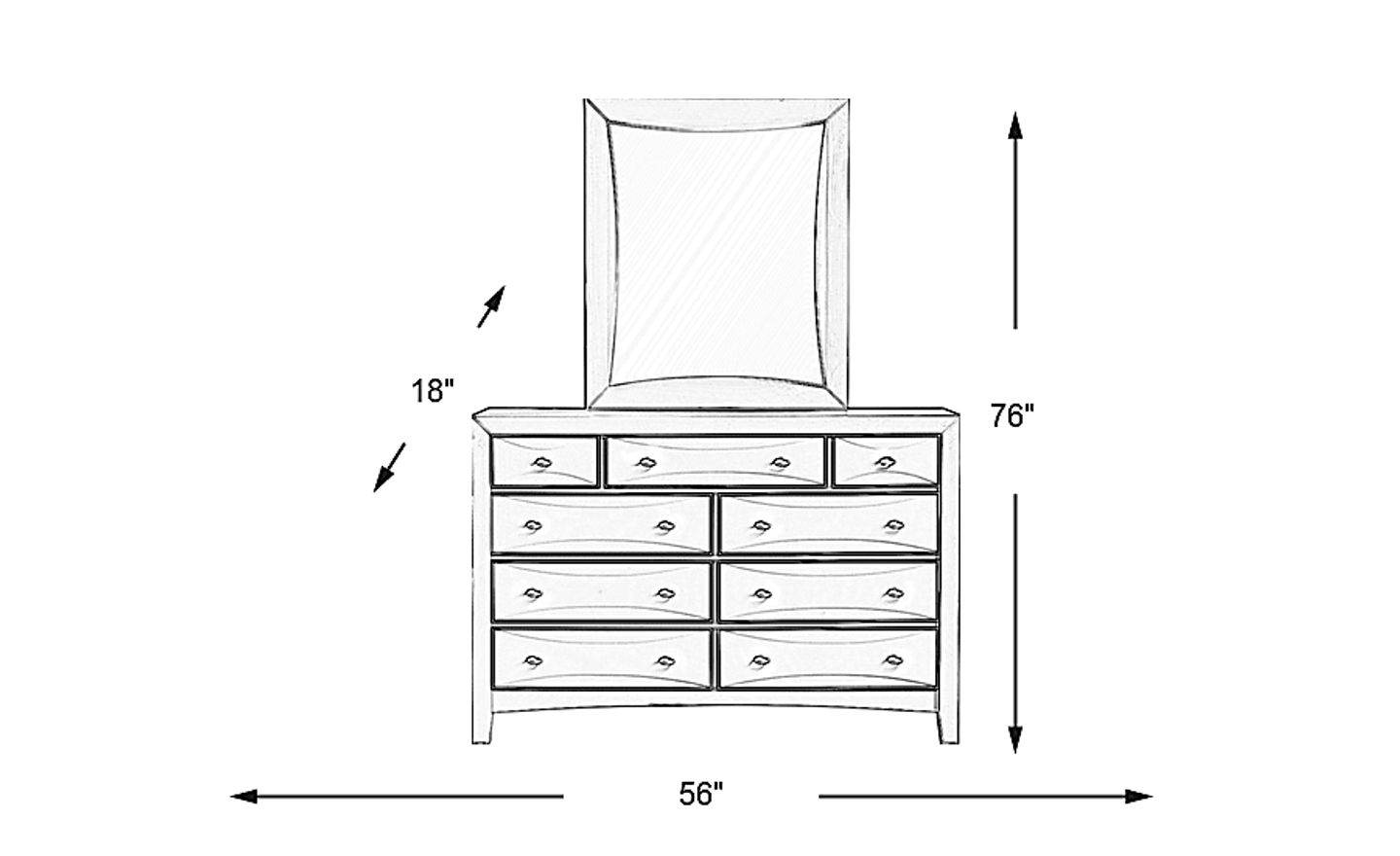 dresser 56"w x 18"d x 38"h, mirror 32"w x 38"h