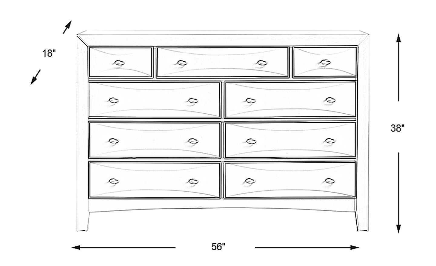 A stylish solution for storing clothing, the Ivy League dresser is an eye-catching piece. Crafted of poplar solids, with a classic white finish, the dresser features nine drawers with solid French dovetail construction. Bevel edged drawers, along with brushed nickel pulls and shaped legs, complete the look.