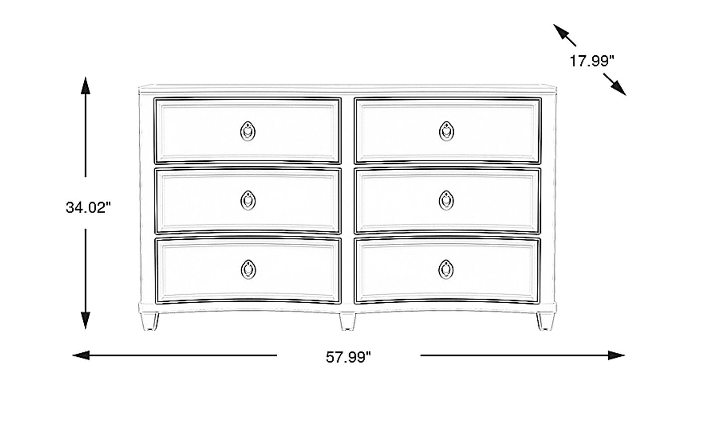 A well-rounded style defined by beautiful flourishes, the Jaclyn Lane dresser is perfect for kids and teens alike. Crafted with birch veneers in magnificent white finish, the piece features an elegantly curved front and is equipped with six soft-closing drawers. Each drawer is constructed with French dovetail joints in the front and English dovetail joints in the back for enhanced durability The bottom drawer of the piece is dust proof, helping to prevent debris from dirtying up clean clothes. The look and feel of the soft gold hardware gives the dresser a timeless final touch.