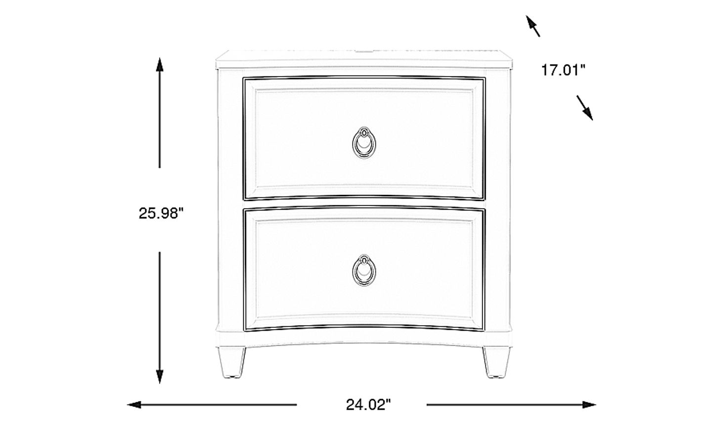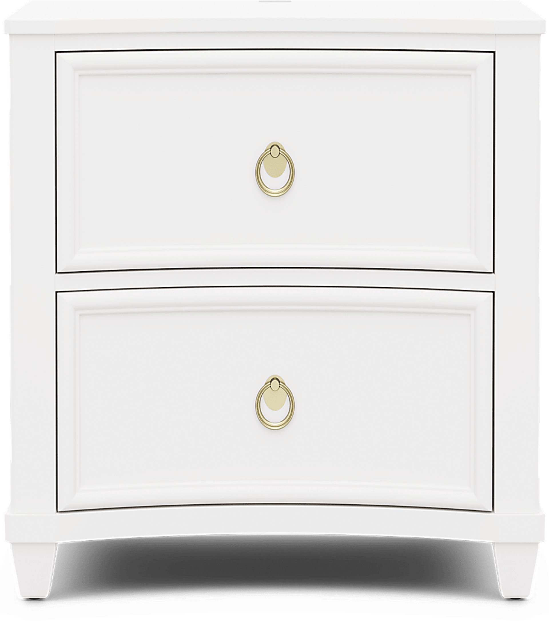 A well-rounded style defined by beautiful flourishes, the Jaclyn Lane nightstand is perfect for kids and teens alike. Crafted with birch veneers in magnificent white finish, the piece features an elegant design and is equipped with two soft-closing drawers. Both drawers are constructed with French dovetail joints in the front and English dovetail joints in the back for enhanced durability. The bottom drawer is dust proof, helping to prevent debris from dirtying up the contents inside. Bedside charging is never far from reach with the USB-A and USB-C charging ports integrated into the top of the piece. The look and feel of the soft gold hardware gives the nightstand a timeless final touch.
