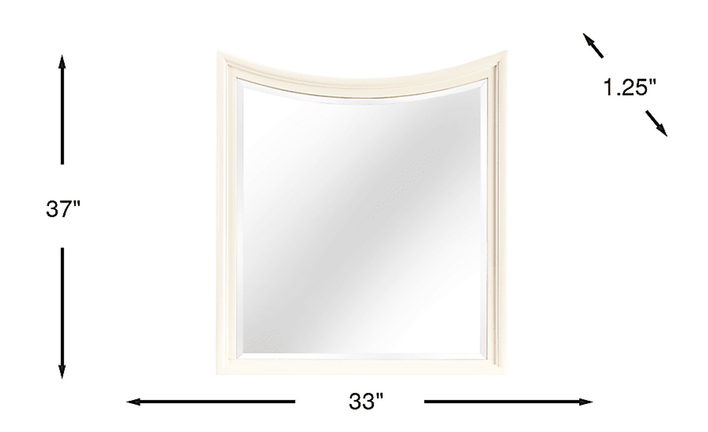 Not your average square mirror, the Jaclyn Place mirror has a sweet curve on the top that adds visual interest and appeal. A perfect companion piece to the Jaclyn Place dresser, this beveled mirror shines true and lets you show your best face every time. Constructed of poplar solids and birch veneers in a classic ivory finish, this chic mirror looks great in any room.