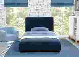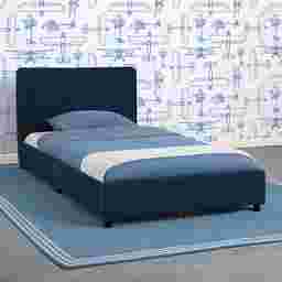 Designed to inspire the sweetest dreams, the Javoa I twin bed boasts clean lines and a low profile that's close to the ground, which makes it easier for your little one to get in and out on their own. Accented with plush upholstery and a generously padded headboard for comfort and support while sitting up to read or watch TV, this cozy twin bed is a must-have for your big-kid's bedroom. Constructed with a durable wood frame with high quality hardware that provides a strong and sturdy bed. Holds up to 350 pounds. This twin bed meets or exceeds all CPSIA requirements The bed's wood platform frame with slats eliminates the need for a box spring. Twin mattress not included. Customer assembly is required.