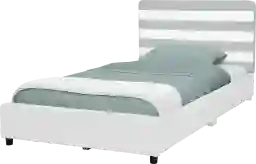Designed to inspire the sweetest dreams, the Javoa II twin bed boasts clean lines and a low profile that's close to the ground, which makes it easier for your little one to get in and out on their own. Accented with plush upholstery and a generously padded headboard for comfort and support while sitting up to read or watch TV, this cozy twin bed is a must-have for your big-kid's bedroom. Constructed with a durable wood frame with high quality hardware that provides a strong and sturdy bed. Holds up to 350 pounds. This twin bed meets or exceeds all CPSIA requirements The bed's wood platform frame with slats eliminates the need for a box spring. Twin mattress not included. Customer assembly is required.