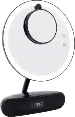 The Jehan mirror has a bright built-in LED strip light with adjustable brightness. Simply tap the top touch sensor on the mirror to turn on/off the lights and press and hold to adjust the brightness. Tap the bottom touch sensor to alternate between three light settings warm, cool, and white lighting. Included is our magnetic 3.5 5x magnifying mirror that can be placed on the Jehan mirror for detailed work and is easily stored away in the slot behind the mirror. The mirror is adjustable up and down a full 180 degrees for your comfortable angle. The Jehan has a built-in digital display with a clock. Customer assembly required.