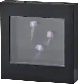 Who couldn't use a calming influence. This Jellyfish table lamp/light box provides the perfect soothing light for any room and can be wall mounted as eye-catching wall art or can stand free on tables, shelves, nightstands, or counters. Measuring 8.75 tall by 8.5 wide including a black plastic frame, this light box includes a 6.25tall by 5.375 wide rectangular window where white jellyfish glide peacefully through colored light. A 3-way push button switch controls the light. Push once to turn on the blue light, push again for a soothing color changing effect, and push once more to turn the light off. The 0.5W color-changing LED can be powered by either 4 AA batteries not included for a clean, wire-free aesthetic. Alternatively, the light box can be powered using the included 8' USB cable for unlimited use without needing to worry about replacing batteries. Customer assembly required.
