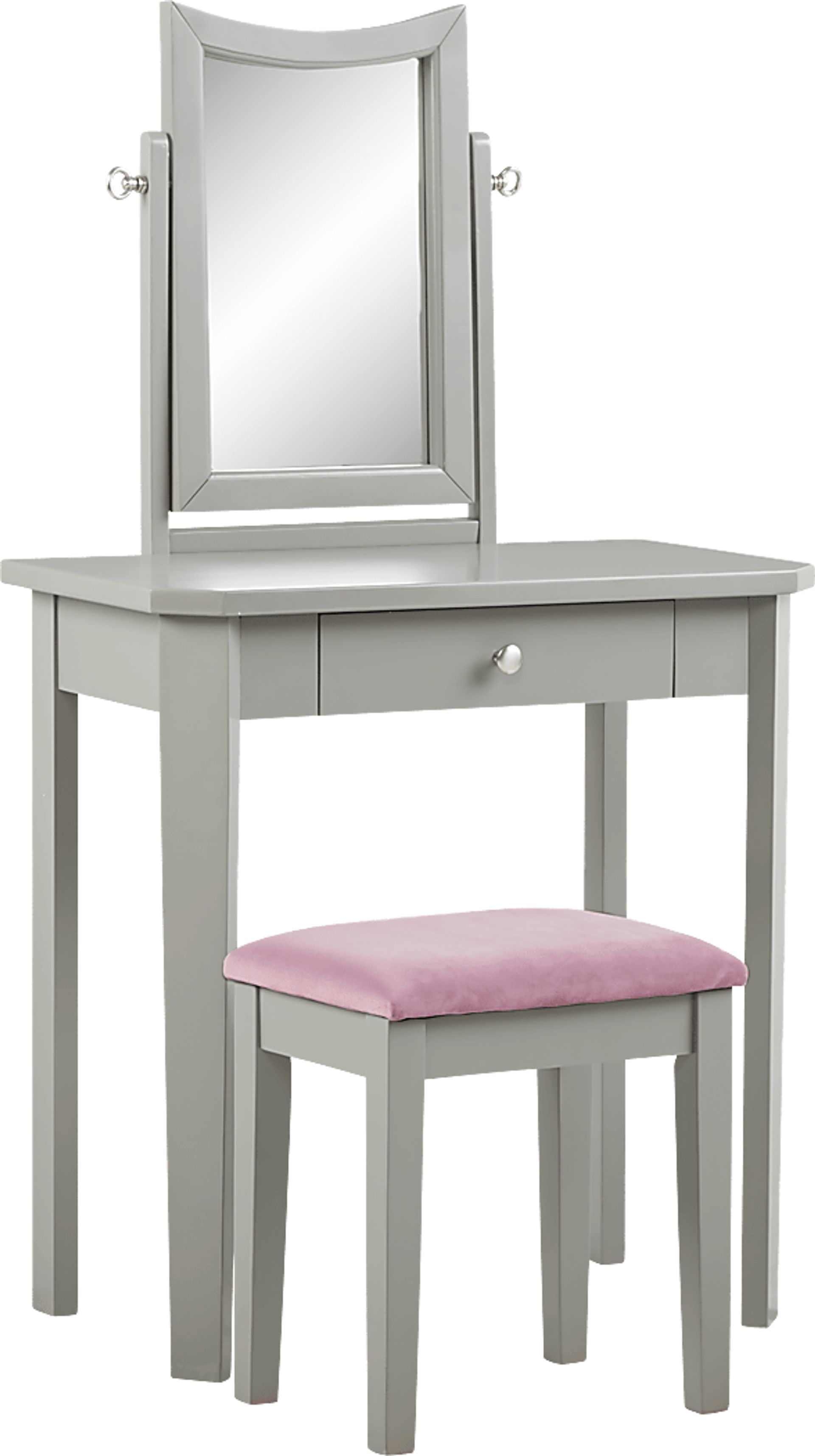 The playful design of the Jo Jo vanity set make it a great place to play and get ready. A drawer is great for storing treasured items and the mirror is the perfect finishing touch. The classic design and clean gray color of this sturdy vanity table pairs with the fresh white stool looks great no matter where you place it in your home.