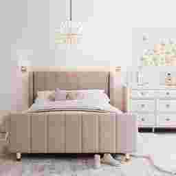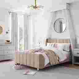 As you assist your teen in designing their new room, let the Kalros Full Upholstered Velvet Bed be the star of the show. Featuring a sophisticated wingback design and vertical channel tufting on the headboard, footboard, and side panels, this luxurious bed is sure to be a hit. The bed accommodates a standard full-size mattress not included and includes a bentwood slats system with additional center legs for extra stability, eliminating the need for a box spring or foundation. Customer assembly is required.