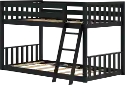 Discover the perfect modern bunk bed for younger kids! The Klaudie I twin over twin low bunk bed is the ideal combination of functional and fun that kids and parents love. Only 50 inches high, this low bunk bed is the ideal size for younger kids and low ceilings. Knot-free, solid pine and aspen wood construction provides strength and durability, and non-toxic finishes make this bed safe for any space. Modern Style: Low bunk bed features open, slatted headboard and sleek, streamlined design; Modern neutral finishes complement any decor. Sturdy & Stable: Strong slats and metal support bar create a 400 lb resting weight capacity per bunk. Space-Saving Bunk Bed: Stacked design maximizes floor space; Total footprint including ladder measures 80L x 54.5W x 50.25H; Headroom on the bottom bunk measures 31. Designed to accommodate standard twin- size mattresses. Slatted base included, no box spring or bunkie board required. Mattress and bedding not included. Customer assembly required.