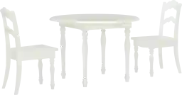 Perfectly sized for young kids work and play, the adorable Ladly table and chairs are ready for arts and crafts, tea parties, and more. With a vanilla finish, turned legs, a round tabletop, and scalloped ladderback chairs, this set combines classic design with functionality for your child's room or anywhere in the house. Customer assembly is required.