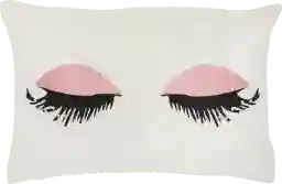 Show off your posh style with this glam Lash Park lumbar throw pillow. With its shimmering velvet cover, closed-eyelid design with metallic rose-gold eyeshadow, and faux crystal studded lashes, it's a luxurious complement to your lavishly decorated living room. Made from polyester, this modern throw pillow includes a zipper closure and removable polyester insert for easy cleaning. 12 x 18 rectangle.