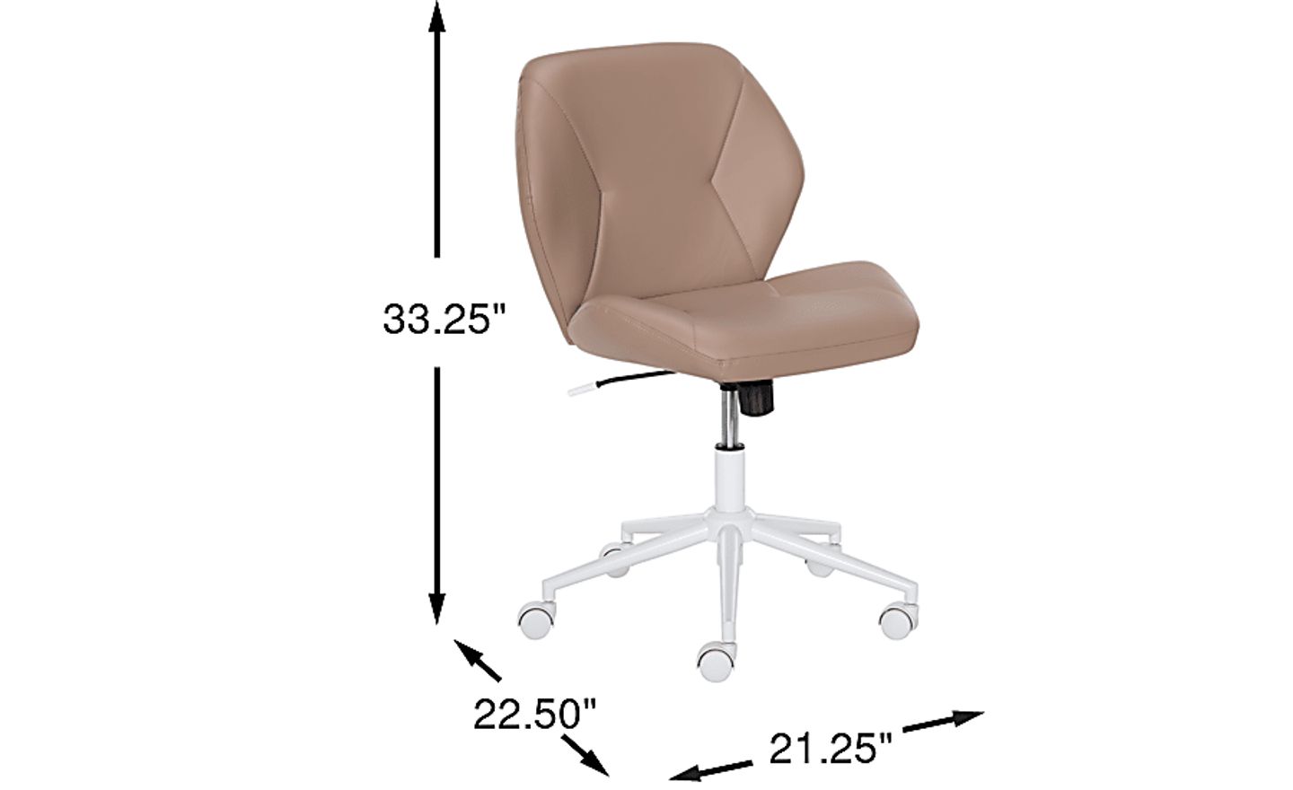 If your desk needs a little more comfort and a lot more style, Libby is the kind of chair that makes you want to sit down and stay awhile. Upholstered in a smooth, easy care man-made material, this brown chair has a curved back and cushioned seat designed to keep you comfy through everything from study sessions to crafting to hanging out before going out. A height adjustment mechanism, swivel feature and rolling casters make this chair as functional as it is fun.