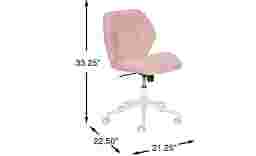 If your desk needs a little more comfort and a lot more style, Libby is the kind of chair that makes you want to sit down and stay awhile. Upholstered in a smooth, easy care man-made material, this pink chair has a curved back and cushioned seat designed to keep you comfy through everything from study sessions to crafting to hanging out before going out. A height adjustment mechanism, swivel feature and rolling casters make this chair as functional as it is fun.
