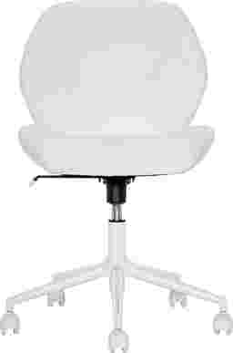 If your desk needs a little more comfort and a lot more style, Libby is the kind of chair that makes you want to sit down and stay awhile. Upholstered in a smooth, easy care man-made material, this white chair has a curved back and cushioned seat designed to keep you comfy through everything from study sessions to crafting to hanging out before going out. A height adjustment mechanism, swivel feature and rolling casters make this chair as functional as it is fun.