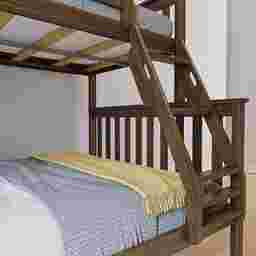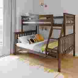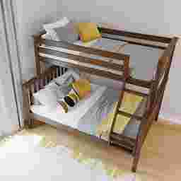 Turn bedtime into the best time with the Sasomi Twin Over Full Bunk Bed, designed for both sleep and play. The top bunk features extra-tall 14in. guardrails to keep little dreamers safe and snug all night long. A reversible, removable ladder with smooth, rounded edges makes climbing up and down fun and easy. Crafted from strong, solid pine wood, this bed is built to handle everything from sleepovers to pillow forts. The modern slatted design and color-matched hardware give it a cool, polished look parents will love. Each bunk supports up to 400 pounds, so kids can grow with it while parents enjoy lasting durability. With its space-saving design and no box spring needed, this bunk bed brings big fun and comfort to any room. Customer assembly is required.