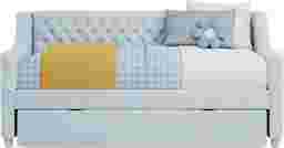 Kids Lindbrook Sand Bedroom with Alena Light Blue Twin Daybed and Twin Storage Trundle