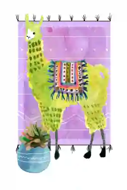 Animal motifs like the llama in this illustration are excellent choices for longevity. Unlike nursery-specific themes, whimsical animal illustrations transition beautifully from a toddler's room to a "big kid" space. The sophisticated purple and green color palette adds a modern touch that remains stylish as your child's tastes evolve, providing long-term value for your home decor.