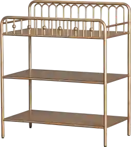 The Lolle Metal Changing Table brings timeless elegance to your space with its graceful arched metal frame and charming decorative ball castings. Like the little black dress of nursery furniture, its a classic choice that complements both vintage and modern decor effortlessly. Designed with both style and function in mind, it features two open shelves for easy access to all your diapering essentials, while the top fits a standard-size changing pad not included. Safety is always in style thats why it includes a wall anchor kit for added security. Customer assembly is required.