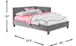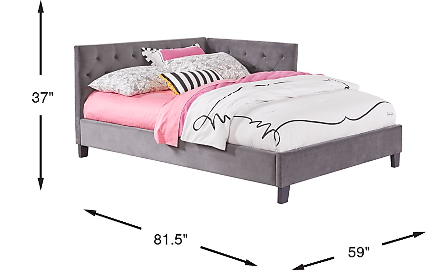 Cozy and cute, the Lucie corner bed creates a comfortable spot for your child to rest while expressing a little personality at the same time. This unique bed was designed to fit in tight corner spots, making it a great choice for smaller spaces. The reversible corner design allows you and your little one to customize the setup, while the low mattress height makes it the perfect first bed for your child. Upholstered in durable, easy to clean charcoal UltraHyde fabric, this bed features an additional plush headboard surface on the side against the wall to provide a soft surface no matter where your child lands. The headboard's side panel is adjustable, so you can place it on either side of the bed. With fully finished sides and back, it's easy to enjoy the flexibility this piece offers. Only use a mattress for this bed, no bunkie board or foundation required! Mattress and foundation (if required) sold separately.