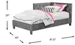 Cozy and cute, the Lucie corner bed creates a comfortable spot for your child to rest while expressing a little personality at the same time. This unique bed was designed to fit in tight corner spots, making it a great choice for smaller spaces. The reversible corner design allows you and your little one to customize the setup, while the low mattress height makes it the perfect first bed for your child. Upholstered in durable, easy to clean charcoal UltraHyde fabric, this bed features an additional plush headboard surface on the side against the wall to provide a soft surface no matter where your child lands. The headboard's side panel is adjustable, so you can place it on either side of the bed. With fully finished sides and back, it's easy to enjoy the flexibility this piece offers. Only use a mattress for this bed, no bunkie board or foundation required! The bed also can double as a lounger for extra seating during sleepovers and get togethers. Mattress and foundation (if required) sold separately.