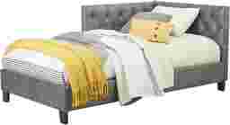 Cozy and cute, the Lucie corner bed creates a comfortable spot for your child to rest while expressing a little personality at the same time. This unique bed was designed to fit in tight corner spots, making it a great choice for smaller spaces. The reversible corner design allows you and your little one to customize the setup, while the low mattress height makes it the perfect first bed for your child. Upholstered in durable, easy to clean gray UltraHyde fabric, this bed features an additional plush headboard surface on the side against the wall to provide a soft surface no matter where your child lands. The headboard's side panel is adjustable, so you can place it on either side of the bed. With fully finished sides and back, it's easy to enjoy the flexibility this piece offers. Only use a mattress for this bed, no bunkie board or foundation required! Mattress and foundation (if required) sold separately. Bed shown is twin size.