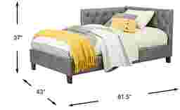 Cozy and cute, the Lucie corner bed creates a comfortable spot for your child to rest while expressing a little personality at the same time. This unique bed was designed to fit in tight corner spots, making it a great choice for smaller spaces. The reversible corner design allows you and your little one to customize the setup, while the low mattress height makes it the perfect first bed for your child. Upholstered in durable, easy to clean gray UltraHyde fabric, this bed features an additional plush headboard surface on the side against the wall to provide a soft surface no matter where your child lands. The headboard's side panel is adjustable, so you can place it on either side of the bed. With fully finished sides and back, it's easy to enjoy the flexibility this piece offers. Only use a mattress for this bed, no bunkie board or foundation required! The bed also can double as a lounger for extra seating during sleepovers and get togethers. Mattress and foundation (if required) sold separately.